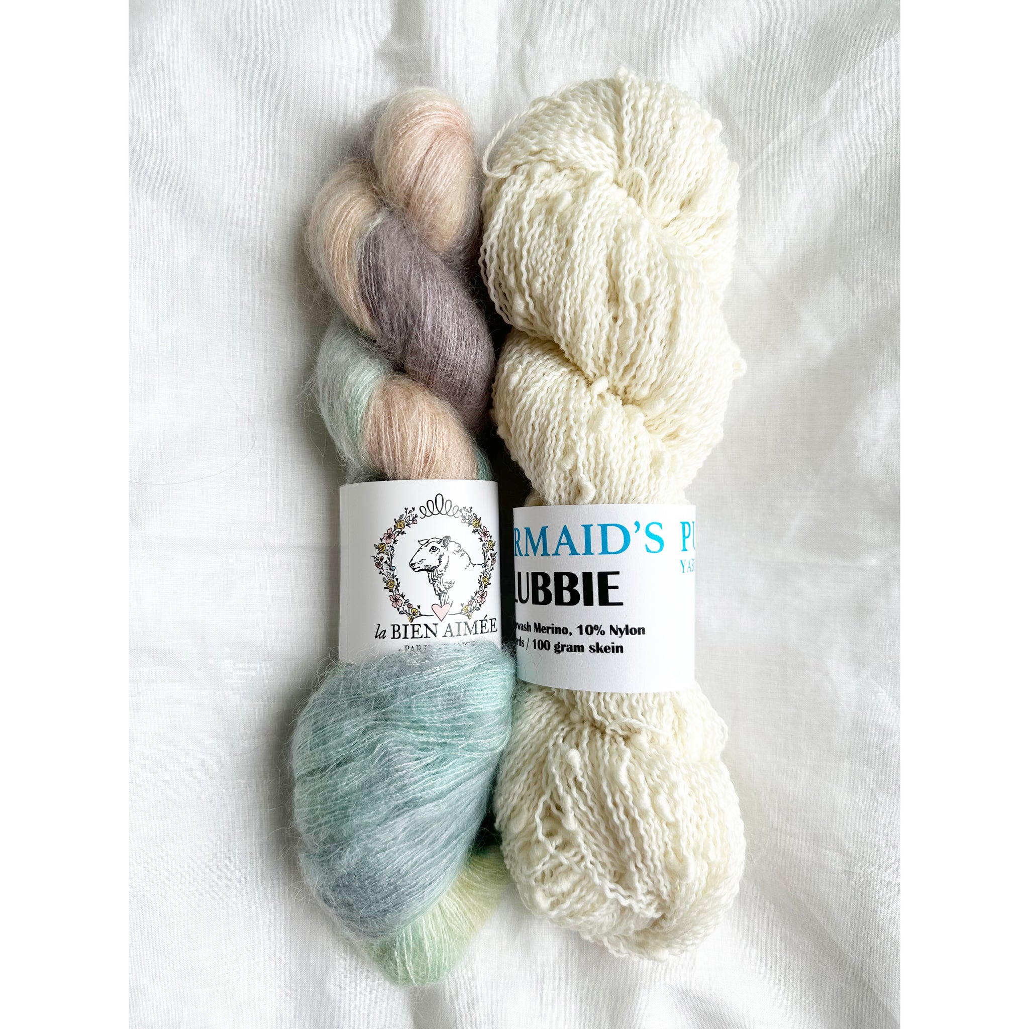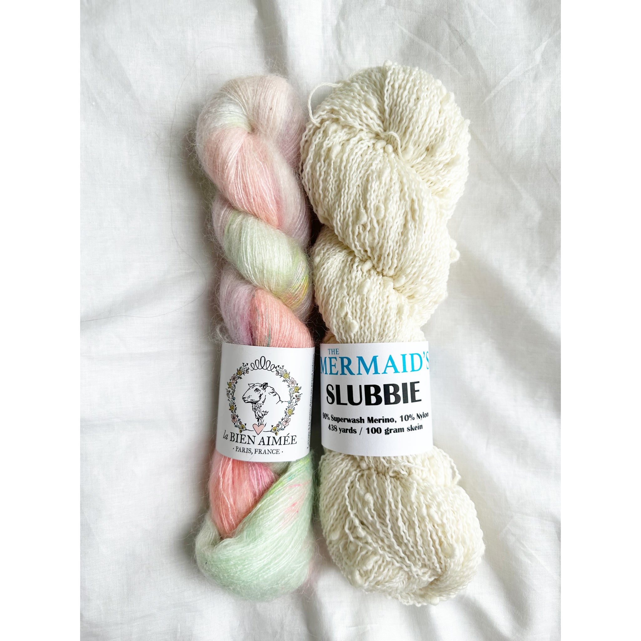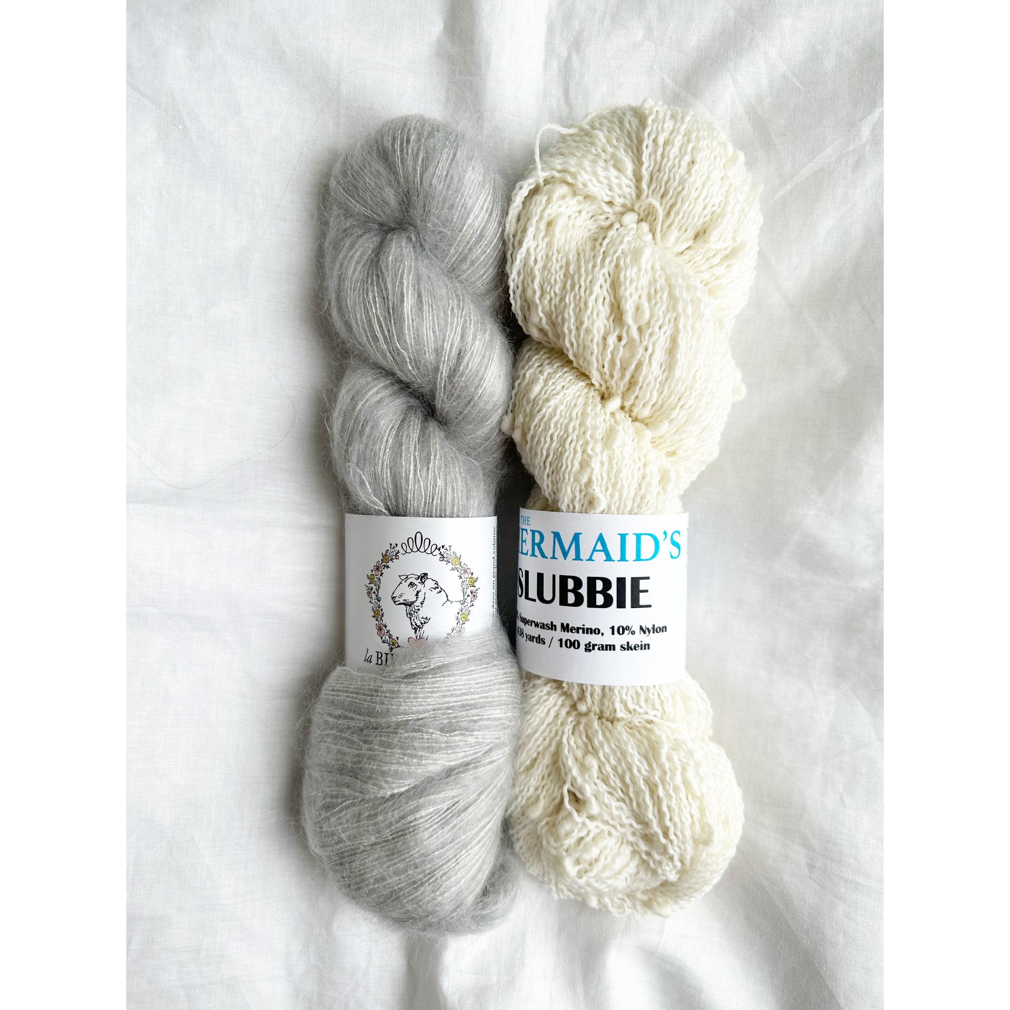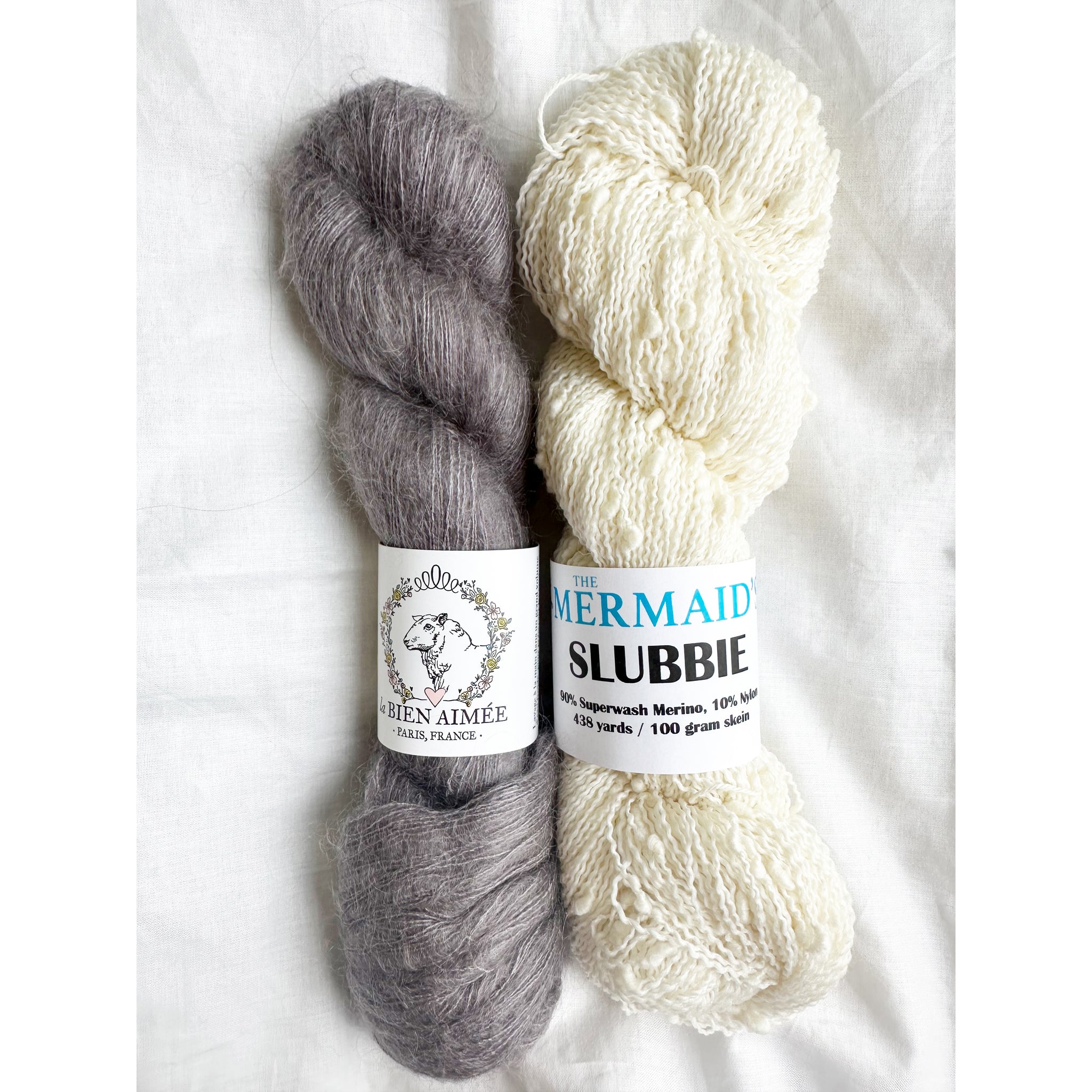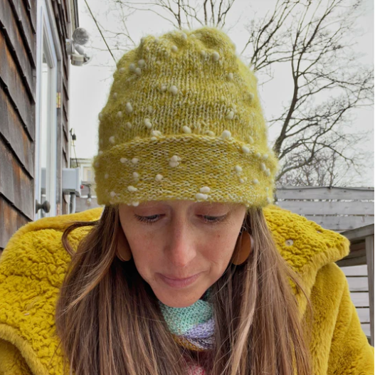 Our Snow Flurries Slouch kit pairs La Bien Aimée’s luxurious Soyeux with our playful thick-and-thin Slubbie to create a hat that’s incredibly soft, cozy, and full of beautiful texture.