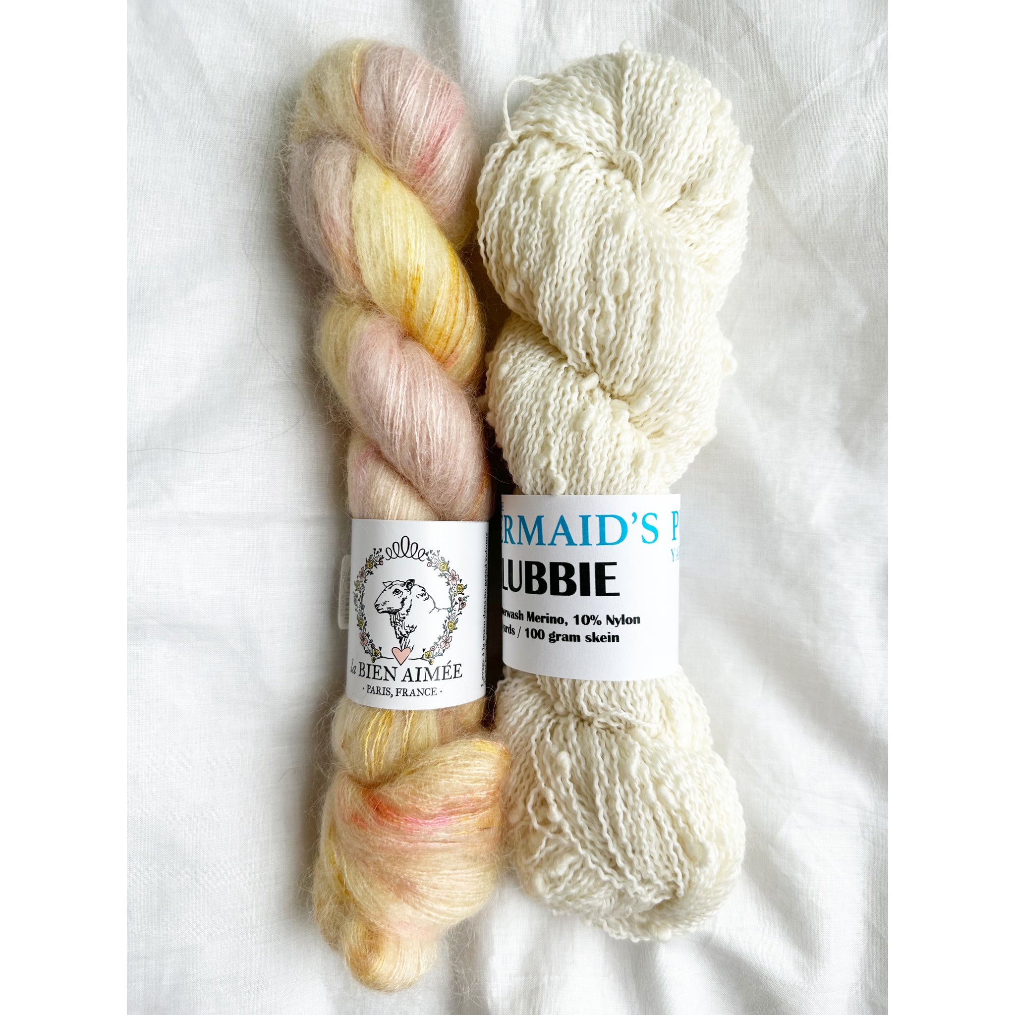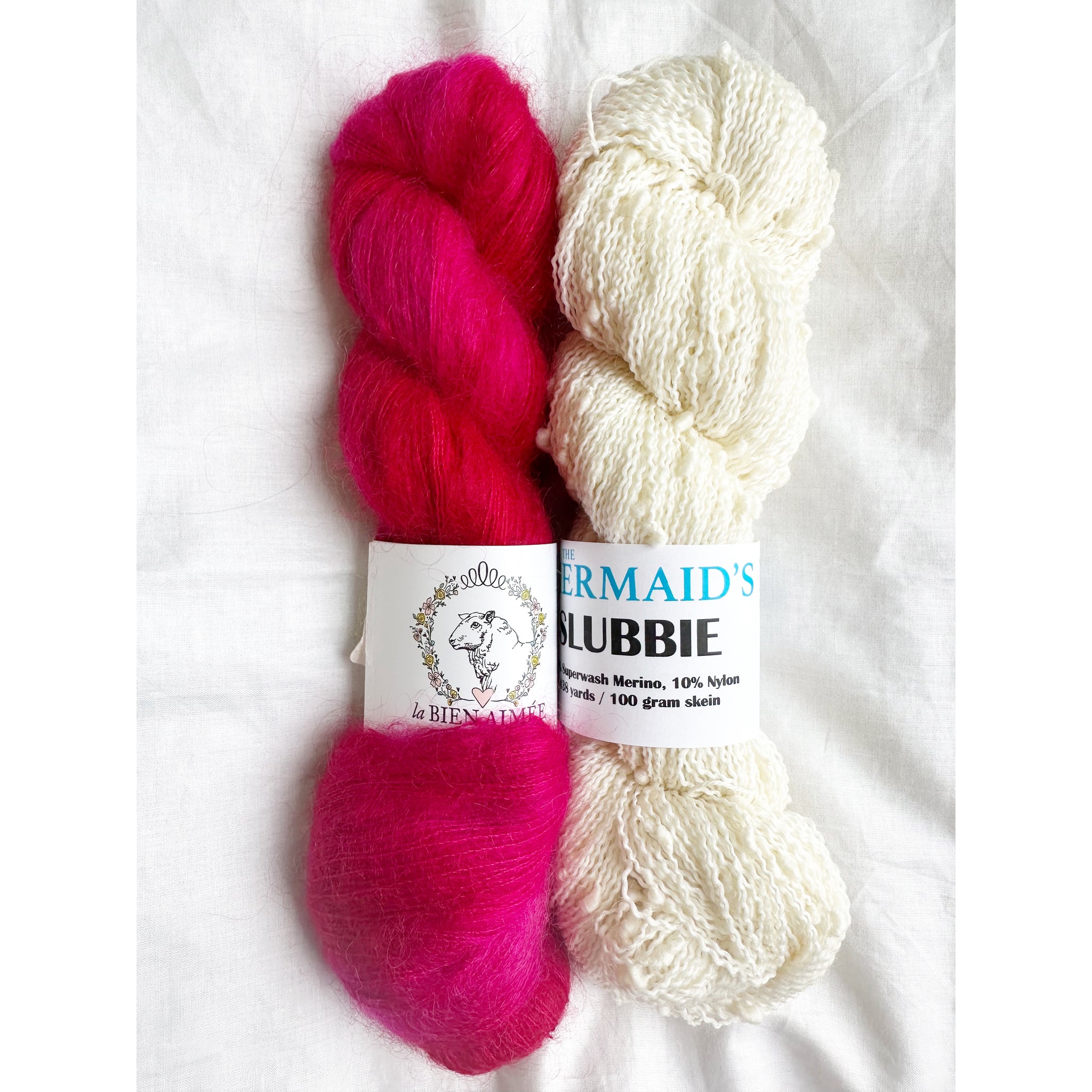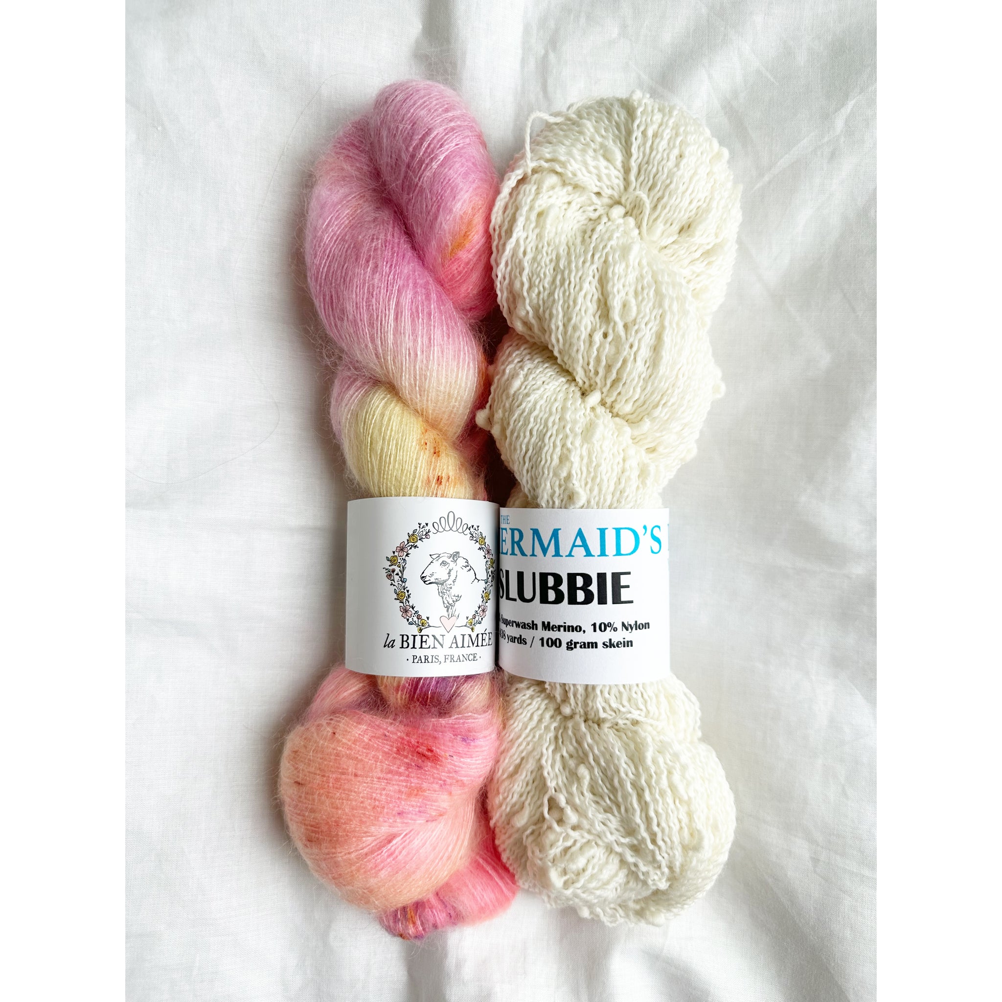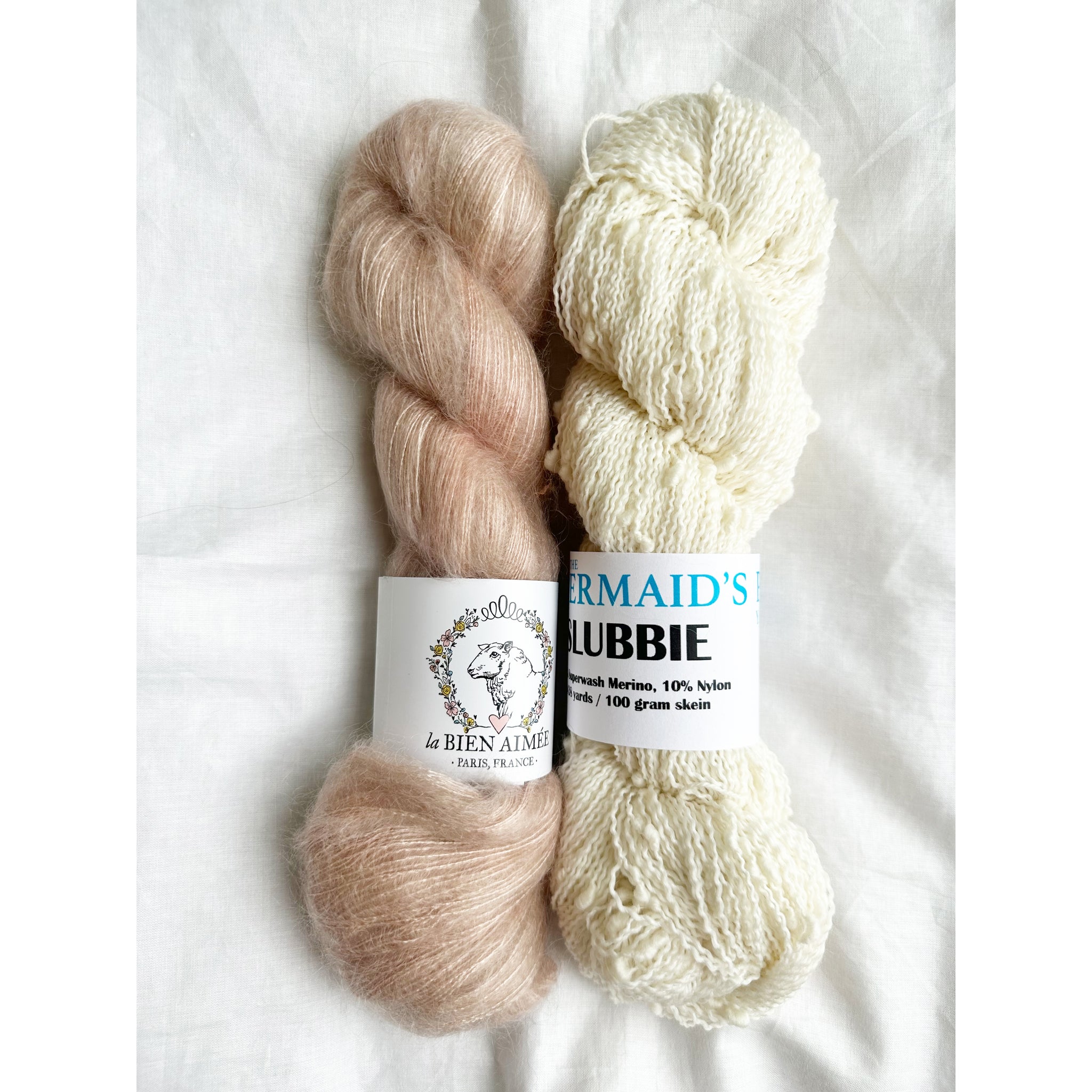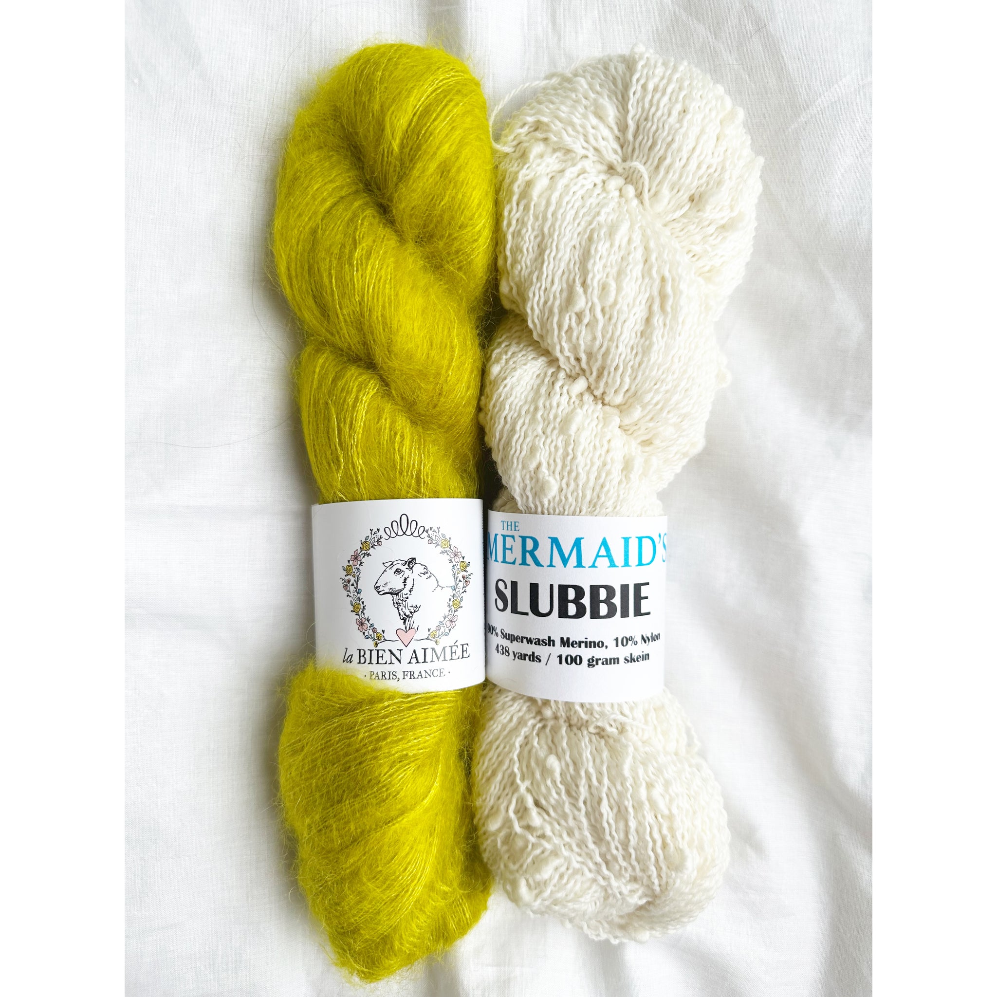 Our Snow Flurries Slouch kit pairs La Bien Aimée’s luxurious Soyeux with our playful thick-and-thin Slubbie to create a hat that’s incredibly soft, cozy, and full of beautiful texture.