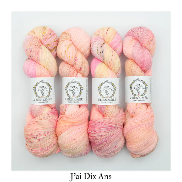 Luxury sock yarn is here, coming all the way from Paris! Cashmerino is the perfect blend for all your fingering weight needs - wool for warmth, cashmere for softness and a touch of nylon for durability. Once you try this yarn its going to be tough to work with anything else again. Hand dyed in La Bien Aimee's glorious colors - this top shelf yarn has it all.
